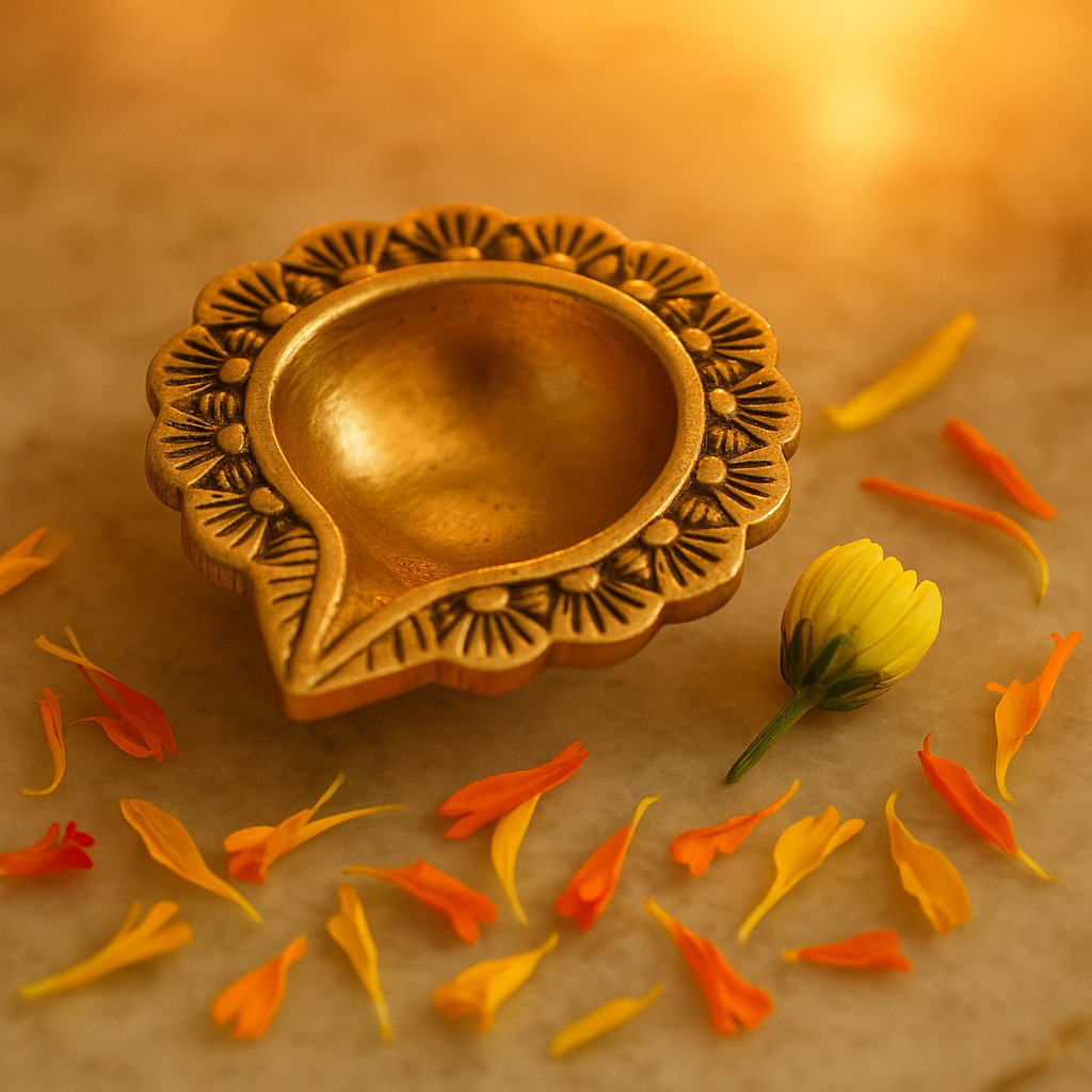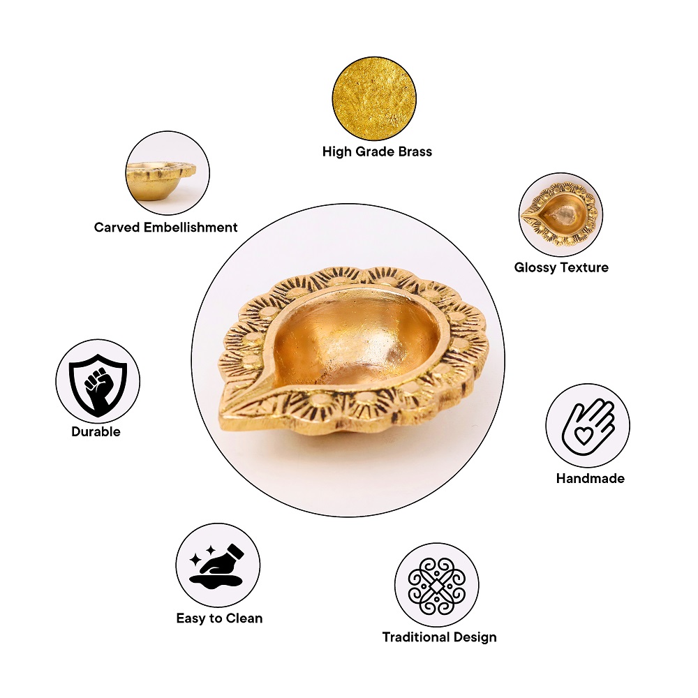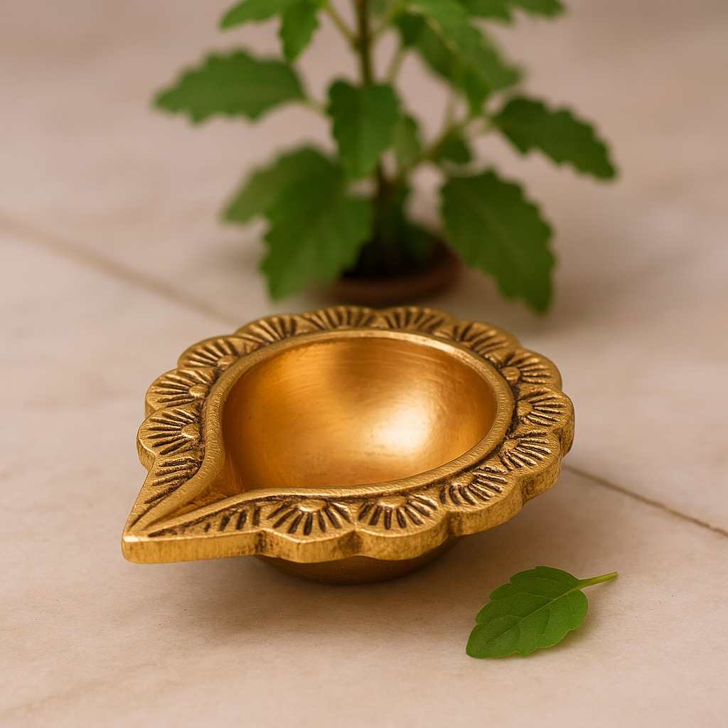 Add timeless beauty to your rituals with this Brass Bud Shaped Oil Lamp, delicately designed with a decorative border. Symbolizing purity, growth, and spiritual awakening, its floral-inspired bud shape makes it both sacred and artistic. Crafted in radiant golden brass, this diya is the perfect blend of traditional devotion and ornamental charm—ideal for mandirs, festivals, or as a heartfelt gift.