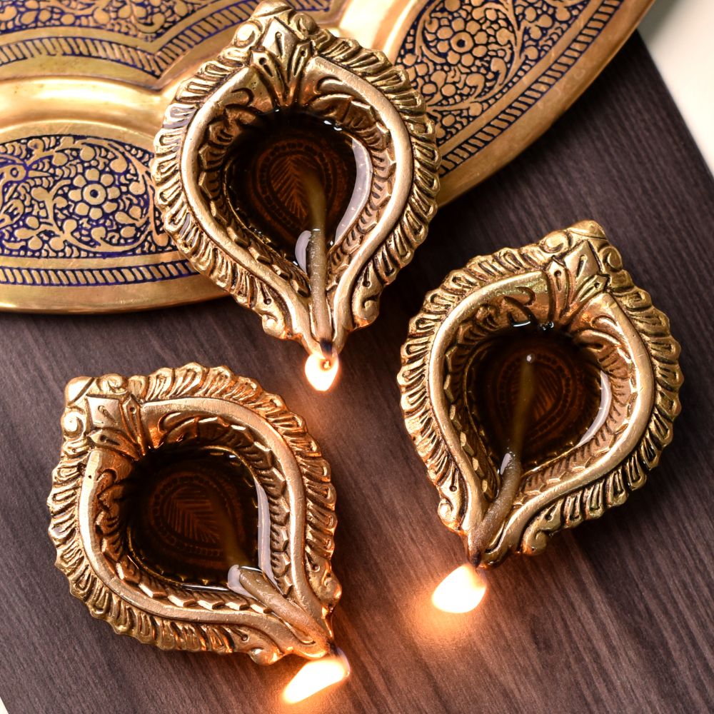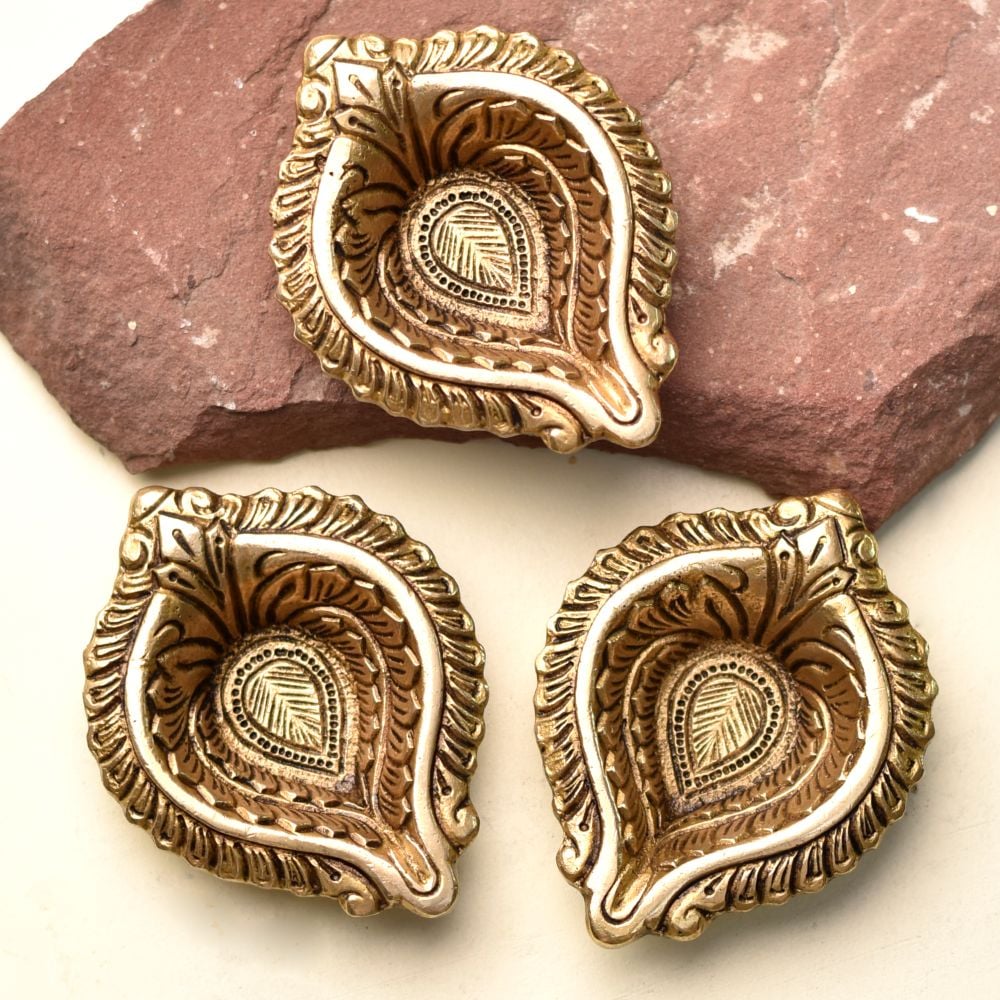 Enrich your festive rituals with this Pack of Brass Bud Shaped Diwali Diyas, handcrafted to bring purity and devotion into every celebration. Made from solid brass with a glowing golden finish, these diyas feature a symbolic bud shape that represents spiritual growth and divine blessings. Designed for mandir use, Diwali décor, and auspicious gifting, they combine elegance with functionality.