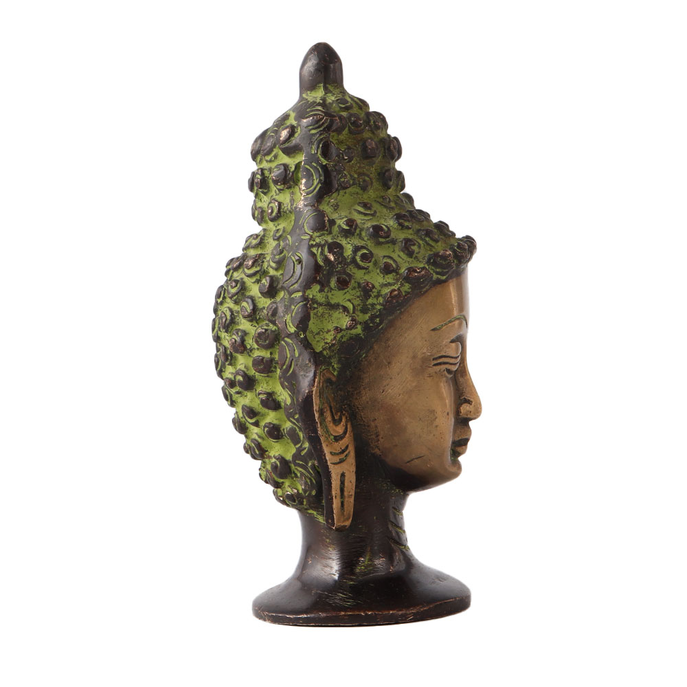 • Brass Buddha Head Statue In Green finish