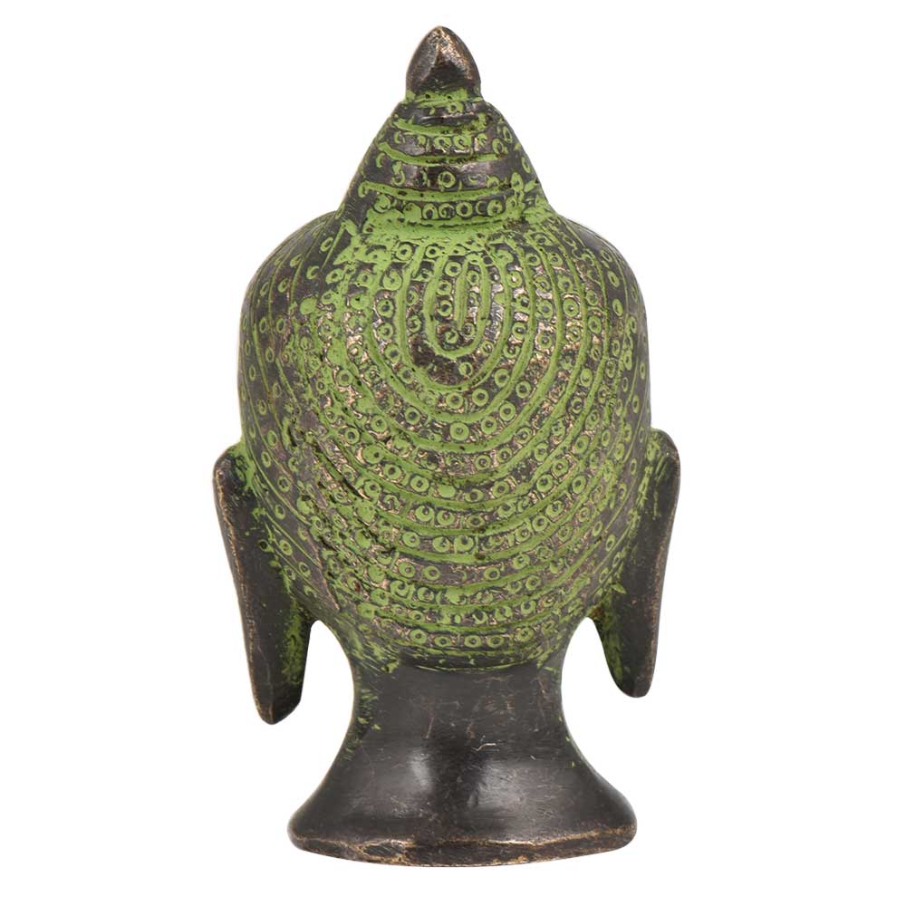 Brass Buddha Head Statue With Eyes Closed Green Patina Finish