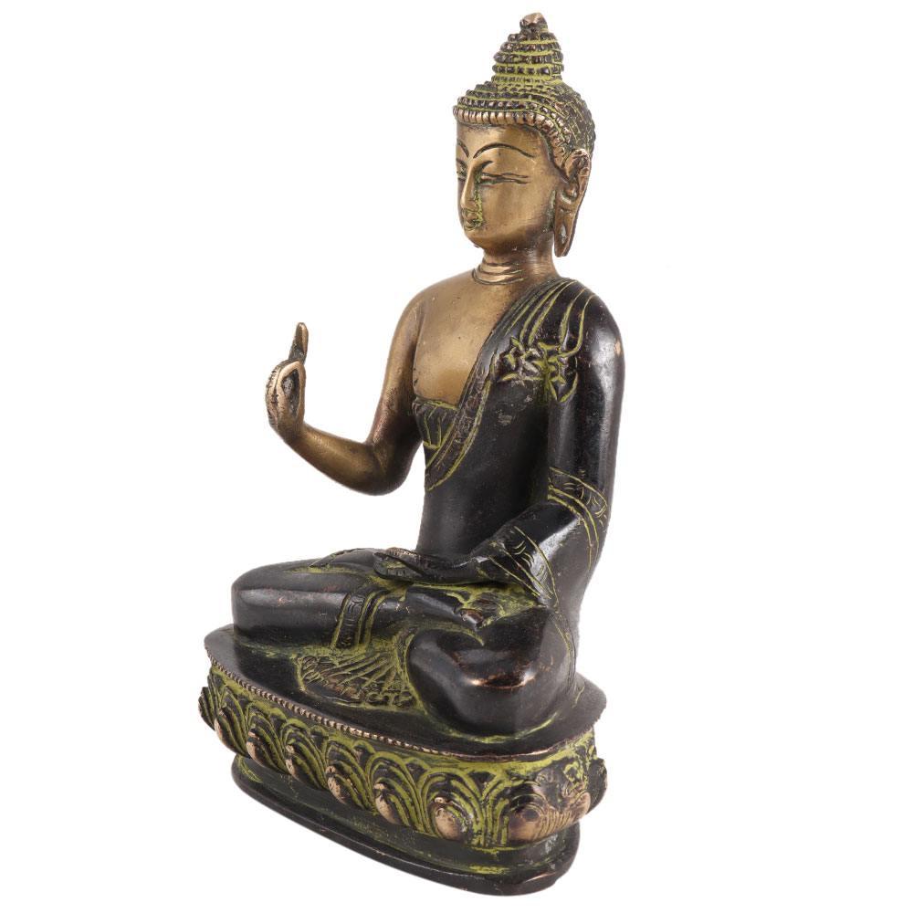 This centerpiece has a luxurious and royal appearance and features a figurine of brass Lord Buddha. Apart from being worshipped, this magnificent showpiece can be displayed in your living room or office. It is thought to give off a lot of positive energy and vibes of valour, hope, power, knowledge, intelligence, and dedication. The statue depicts Lord Buddha in a sitting position and is made of brass that has been adorned with South Silver antique finish and a protective coating.