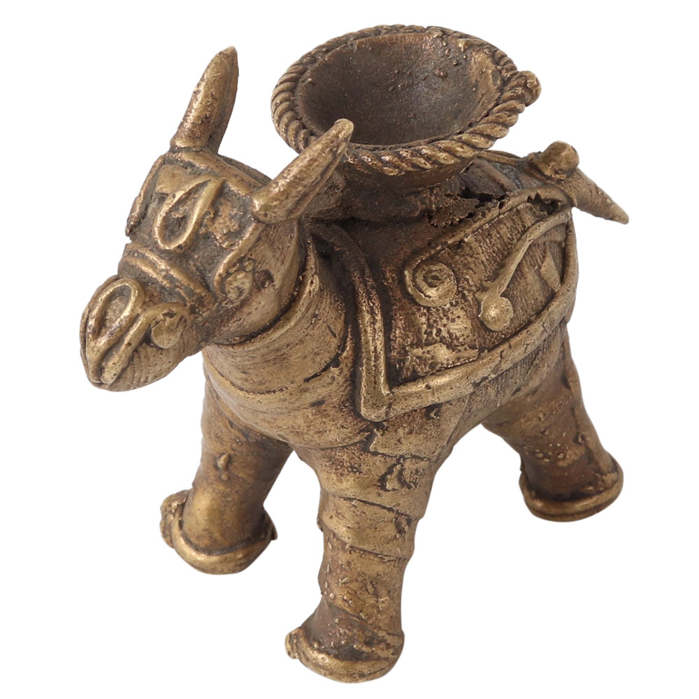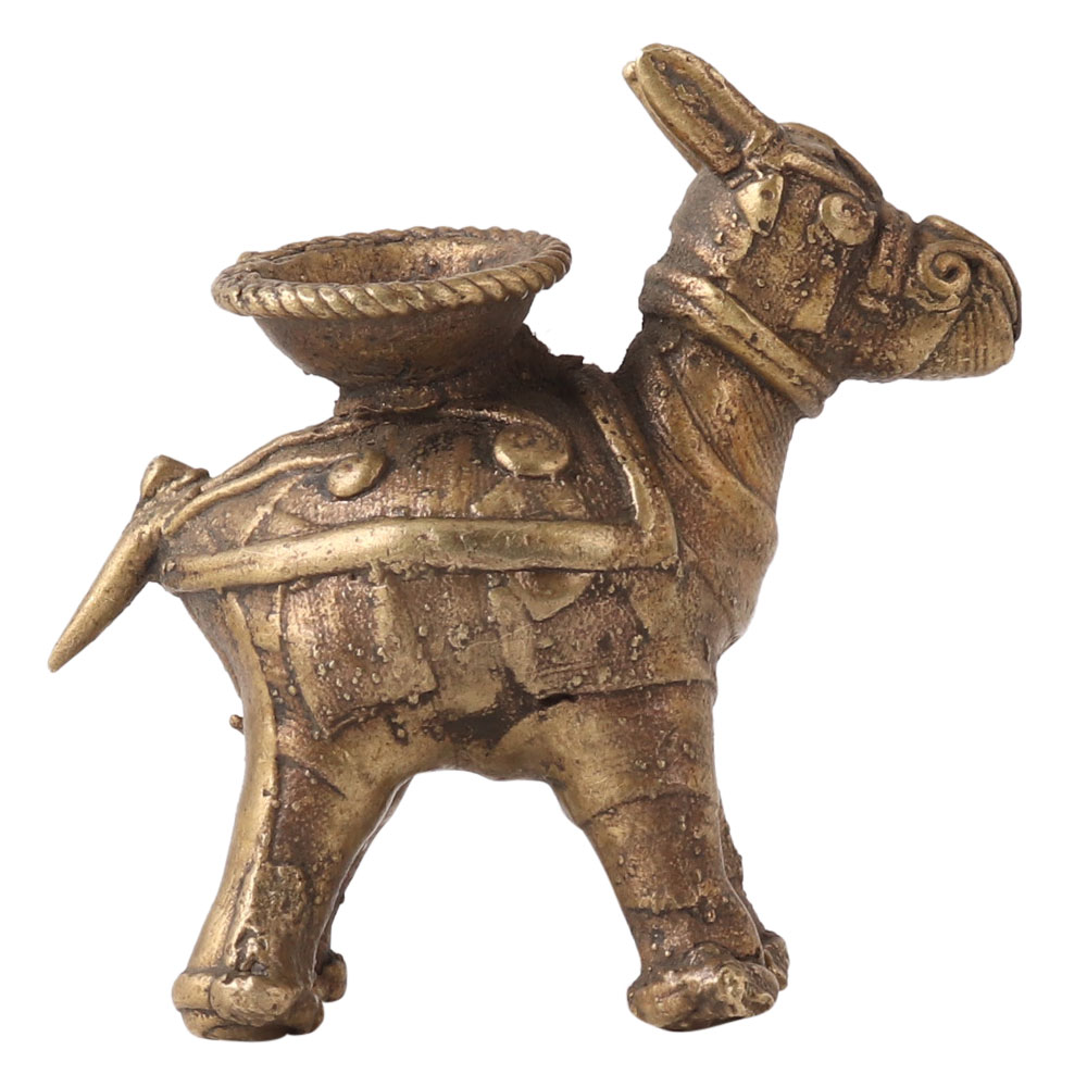 A tribal art designer incense holder to decorate your home. This brass incense holder is crafted in camel statue that has a basket on its back for holding dhoop during prayer or auspicious function. It is beautifully crafted from high quality brass with intricate details. An attractive incense holder for home prayer room, office, restaurant, hotel, shop or cafe. Its alluring brown finish and perfect workmanship set it apart from other incense holders. Use incense holder and spread positive vibes in your home with a dhoop. It is believed that Dhoop can help in concentration, relieve stress, meditate and fights depression. Gift this brass dhoop holder to your friends, family or relatives on a special, festive or auspicious occasion.