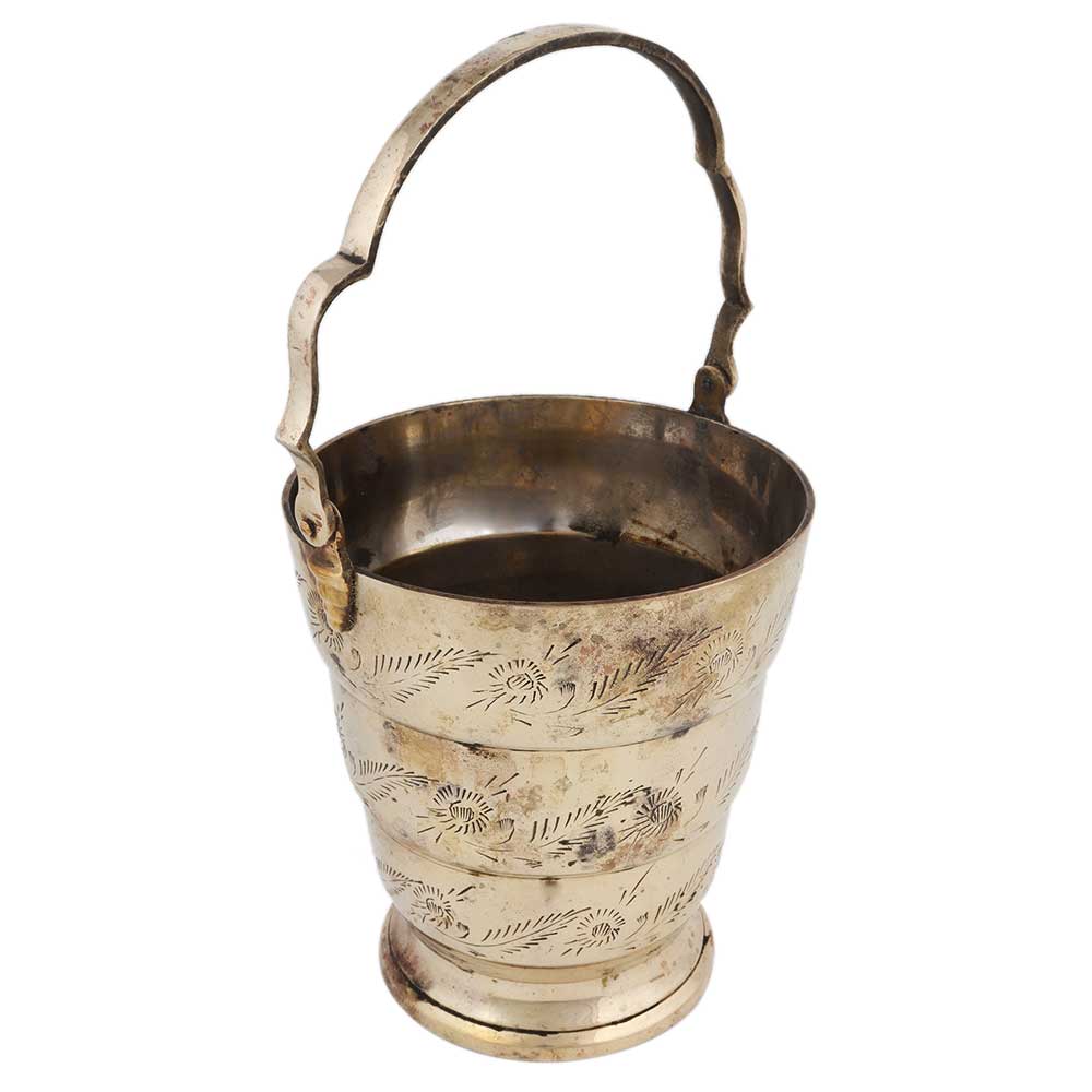 • Brass Carved Bucket Engraved Leaves And Flowers