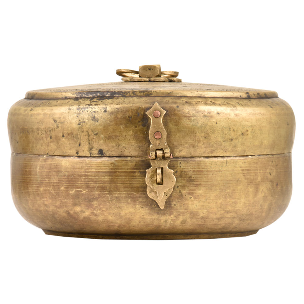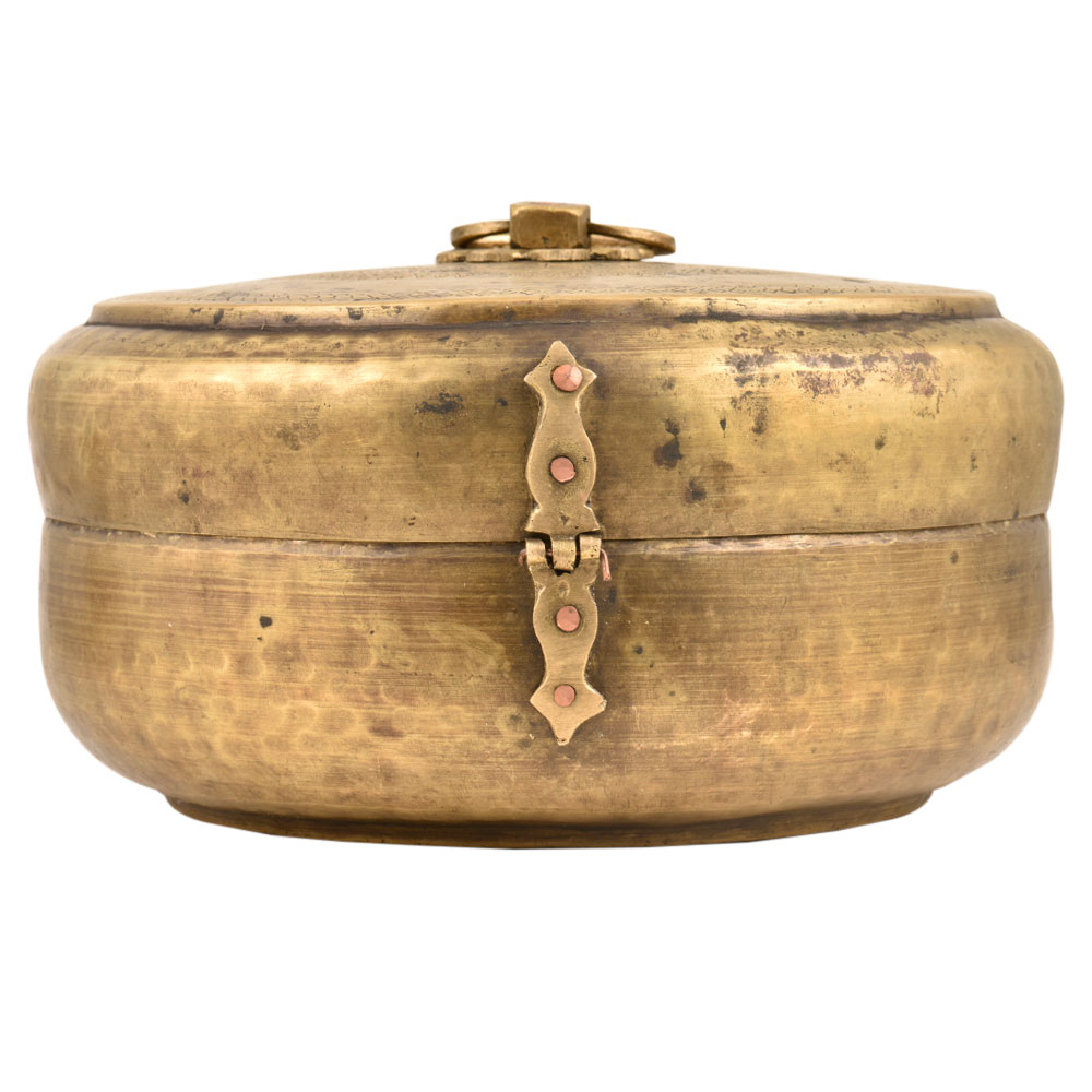 This Round Storage Box is Made of Brass . It is Beautifully Crafted by the Artisans of India. The Storage Box has Fine Detailing Having a Vintage Look Best for Collection Purpose Etc. The Traditional Storage Box has a Beautiful Look Which will Grab People's Attention At Once. This  Engraved Brass Box Can Be Gifted to Someone Who Likes to collect vintage Products .