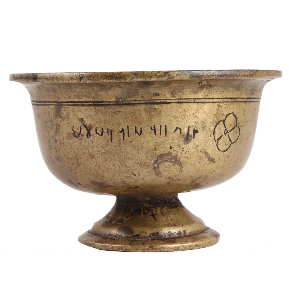 A beautiful brass Temple Incense Bowl. This one is meant to be filled with sand before inserting incense sticks to burn. It is from the early 1900s , and it has engravings around the edges. It's clearly handcrafted and sand cast, with that wonderful uneven look that only old pieces have. Use it for decoration, to display flowers, or as a gift for your loved ones.