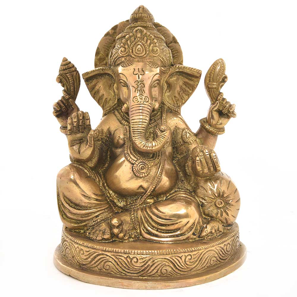 Brass Ganesha the Lord of Lords. He is Considered as the Supreme God without His Blessing No Good Work Can Start. The Lord Ganesha'S Charbhuja Statue is Considered Lucky. on Ganesha'S Left Side a Round Pillow Showing He is in the Resting Position. The Ganesha is One of the Gods Who Listens the Worship of All. He is One of the Gods Who Loves Modak Especially Made by Goddess Parvati. Mushak or Mouse is Sitting Next to the Round Pillow. The Mushak is Favorite to Lord Ganesha. �