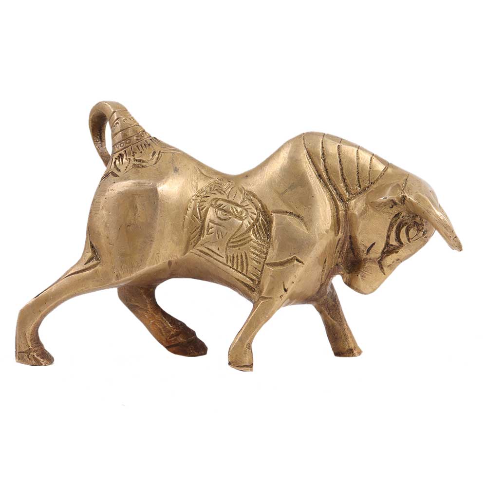 This item is a one-of-a-kind antiques centrepiece statue of a solid brass Charging Bull or stock market Bull. The product has a beautiful antique brass coating and can be used for houses, workplace decor, or gifting. It is also widely used for decoration in showrooms and hotels. It makes an excellent gift, especially during religious holidays and celebrations.