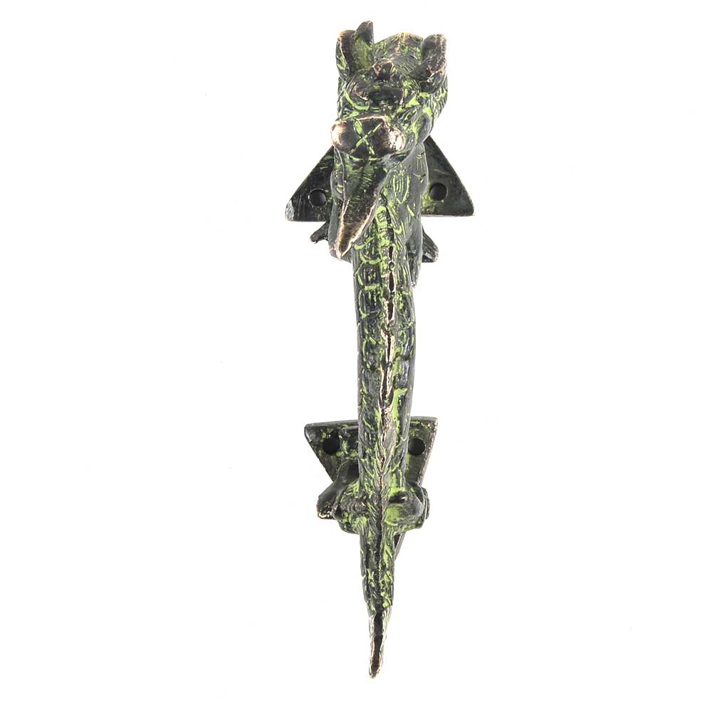 It has Lovely Brownish Color with Onset of Patina formation Dragon is Depicted on Its Four Legs with Turned Head and Protruding Tonqueand Raised Tail. Ideal for Drawer, Dresser, Cabinet, Wardrobe, Cupboard and Almirah.