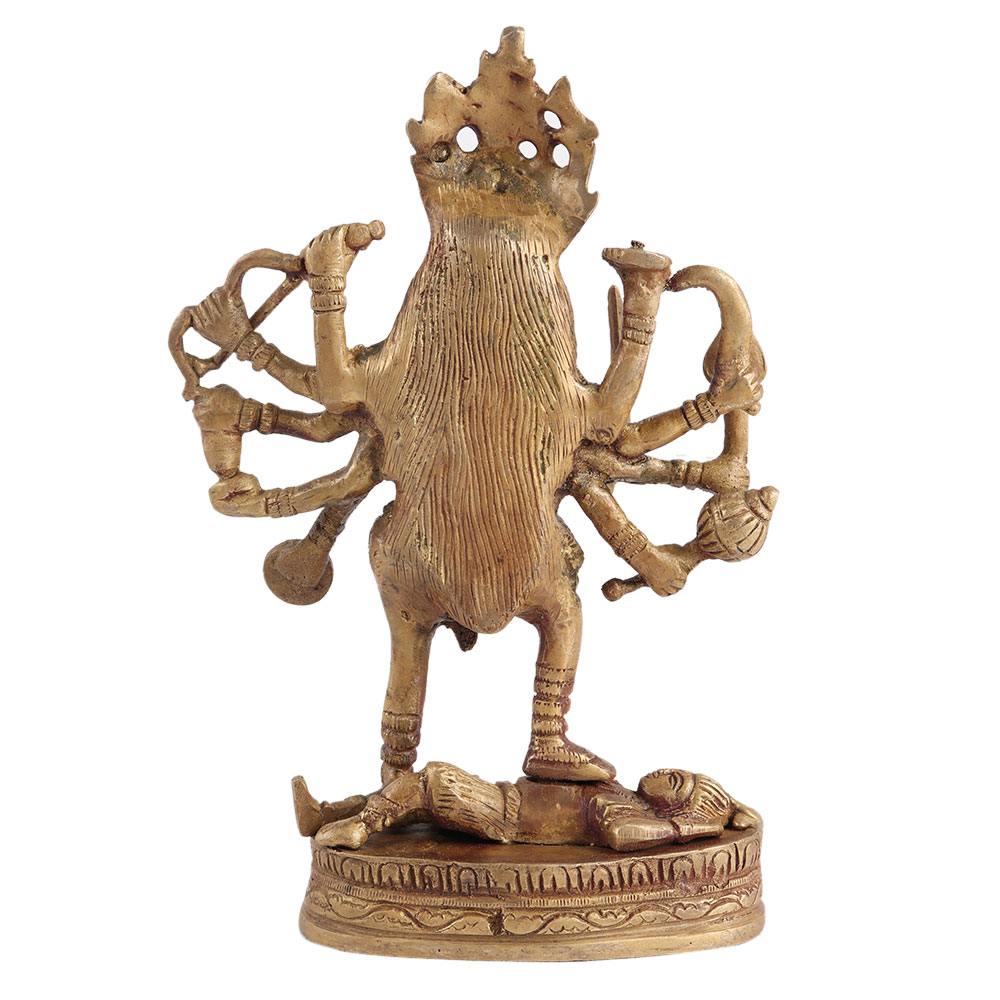 Hindus believe that his powers of destruction and recreation are still used today to destroy the world's illusions and imperfections, opening the way for beneficial change. Handmade Goddess Kali Handmade Brass Statue  with a golden finish is an ideal  Spiritual Lucky Gift, Fengshui Gift, Thanksgiving Gift, Anniversary Gift, Birthday Present, Wedding Present, Diwali Gift, Durga Pooja Gift, Dussehra Gift.