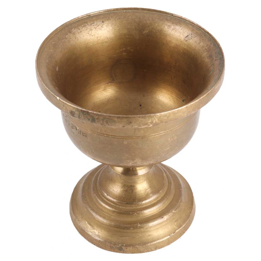 The round base of this designer brass mug is mounted on a circular base. It can be used to complement traditional decorations in the living room or dining room. Use it as a candle holder or a special gift for your friends and family.