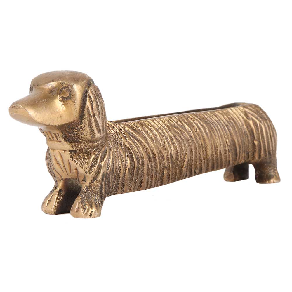 Place this puppy on your table for a cute accent to your working. Hand crafted brass Dog card holder is a perfect workstation and work accessory, Timeless or creative decorative Art. This sturdy Dachshund with a beautiful patina is ideal for a dog lover's desk or a present to your favorite vet.