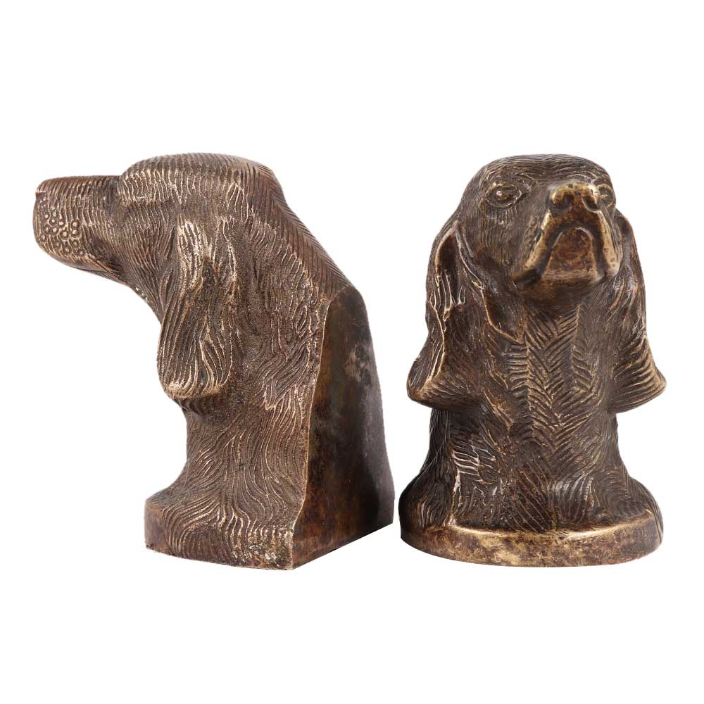 Brass Dachshund Dog Face Bookends In Dark Finish