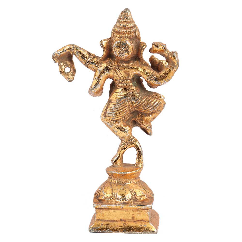 • Brass Dancing Ganesha Statue In Golden Finish