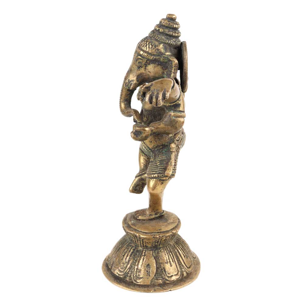 This traditional brass ganesha on one foot and the other rests on a lotus base . It can be used for worshipping, decoration .Diwali gift, wedding decoration, stage decoration and showpiece for your home interiors.