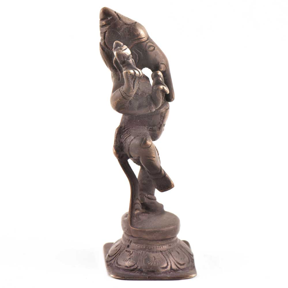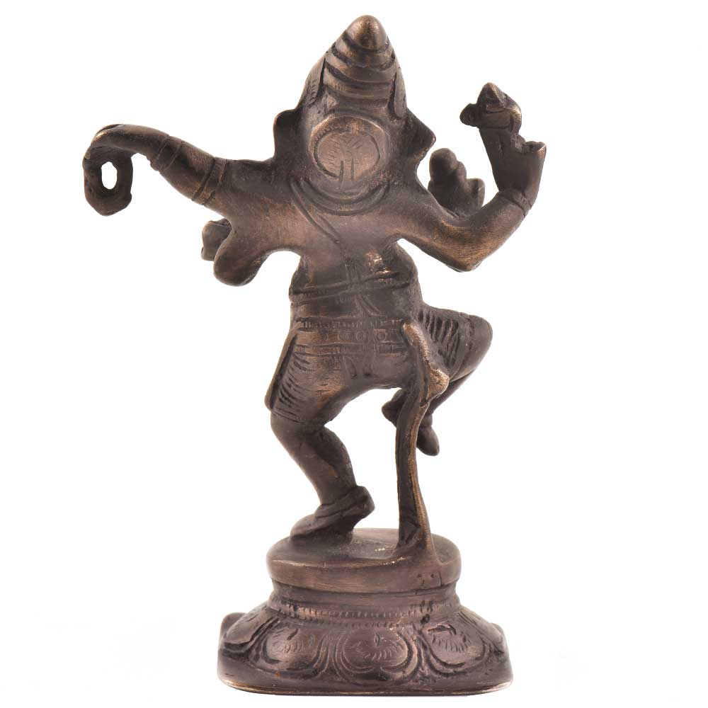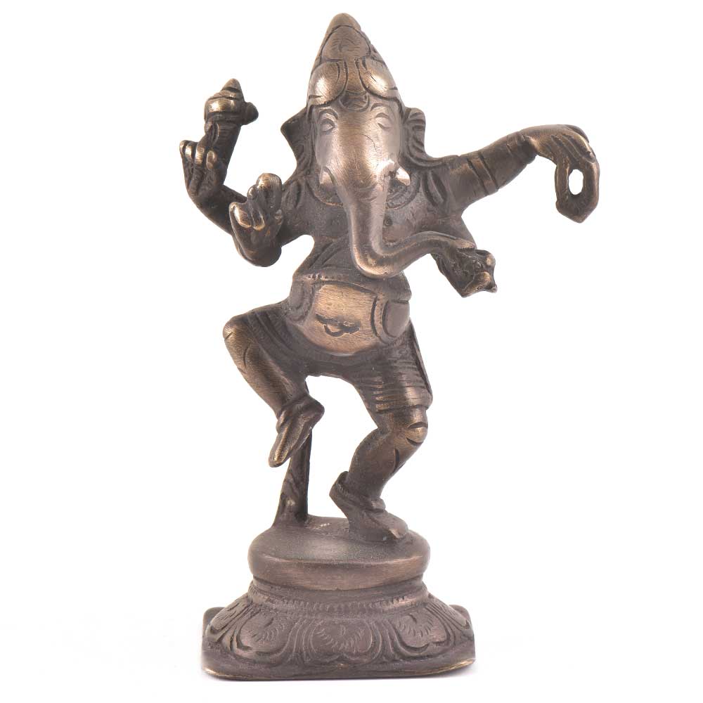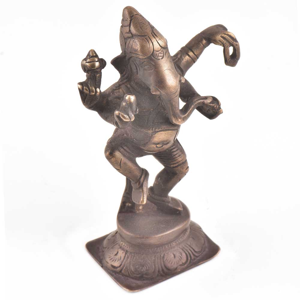 Beautiful handcrafted brass dancing ganesha statue shows Nritya Ganapati dancing with leg raised and the other on the lotus flower pedestal. Depicts dancing Ganesha, symbolizing joy and it should be placed in the living room or any other room . Also a popular gifting optin for friends and relatives.