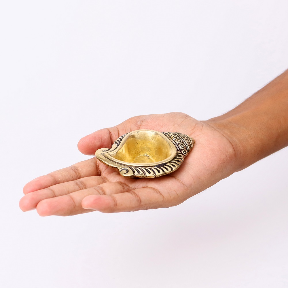Indianshelf.com for bulk/wholesale orders.Indianshelf.us for personal purchases.Bring divine energy into your home with the Brass Decorative Conch Shaped Oil Lamp. Designed in the sacred form of a conch (Shankh), this diya symbolizes purity, prosperity, and the eternal sound of Om, making it an auspicious choice for pooja rituals and festive décor.