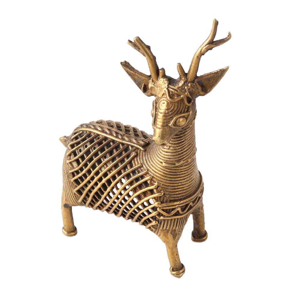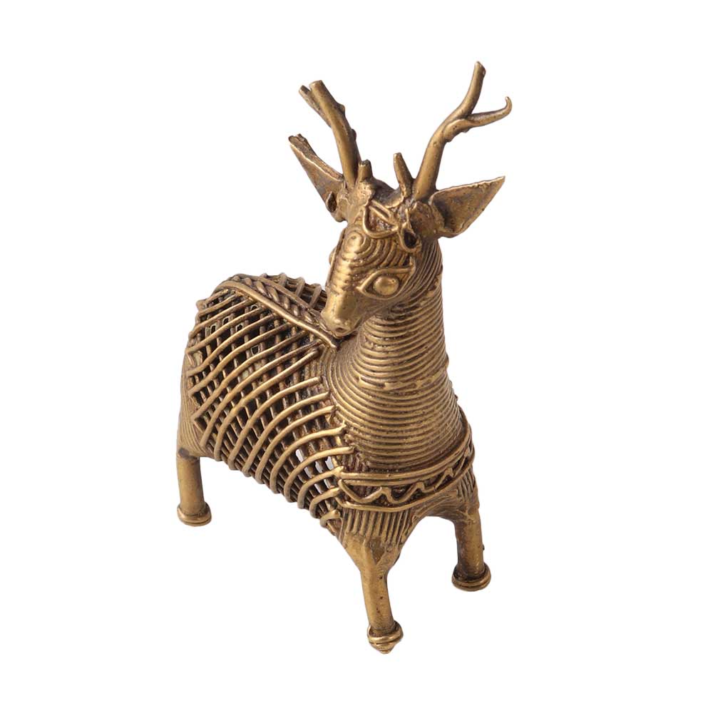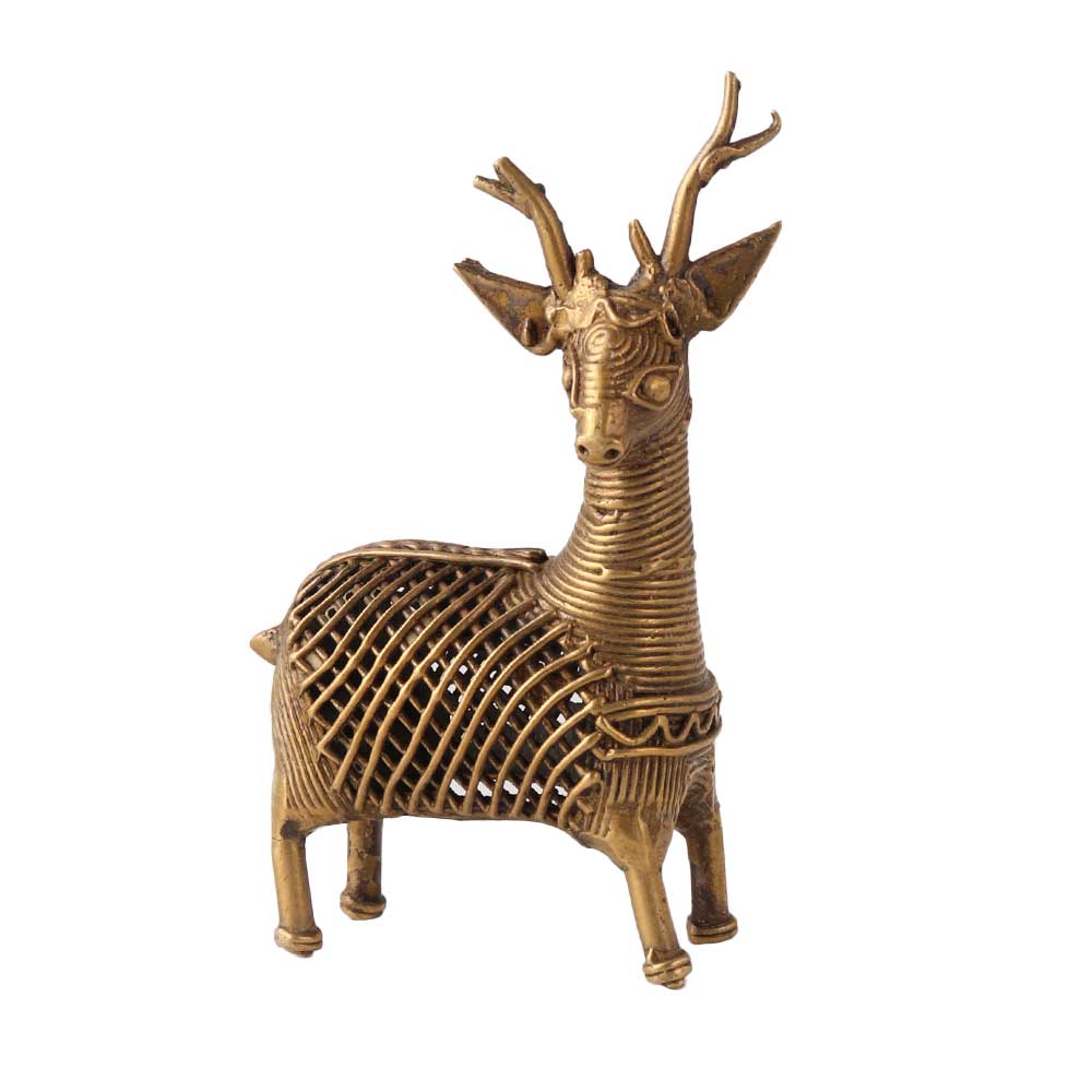 Dhokra art is an ancient form of metal casting that originated in India and is still practiced today. The final product is a detailed, intricately designed sculpture with a unique texture and patina. A Deer statue Dhokra art is a decorative item that features a deer figurine made using the Dhokra art technique. The Deer statue Dhokra art is a great way to add a touch of tradition and cultural significance to a room. They can be placed on a mantel, bookshelf, or coffee table as a focal point, or used as a unique conversation piece. They are also a great gifting option for people who are fond of tribal, ethnic or animal motifs. These statues are a long-lasting, durable and low maintenance decorative item.