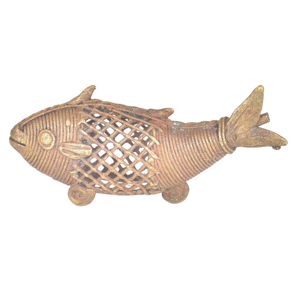 • Brass Dhokra Art Fish With Rustic Look