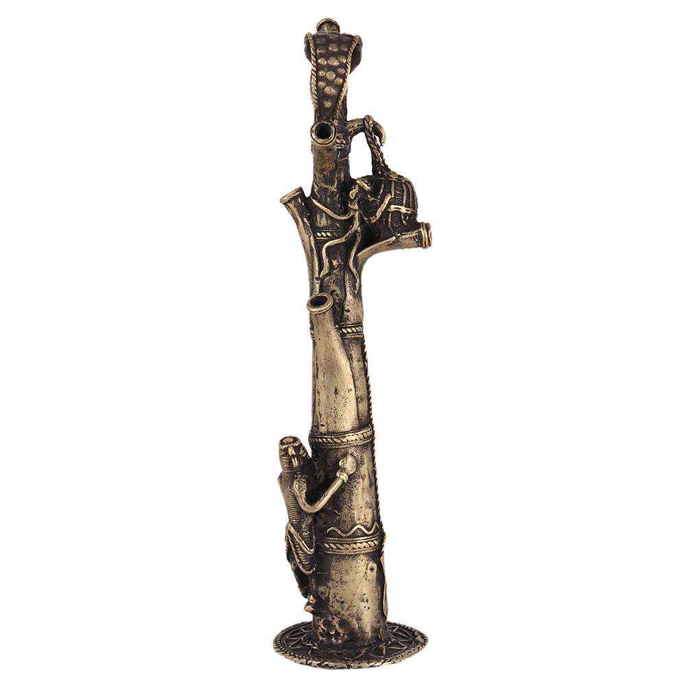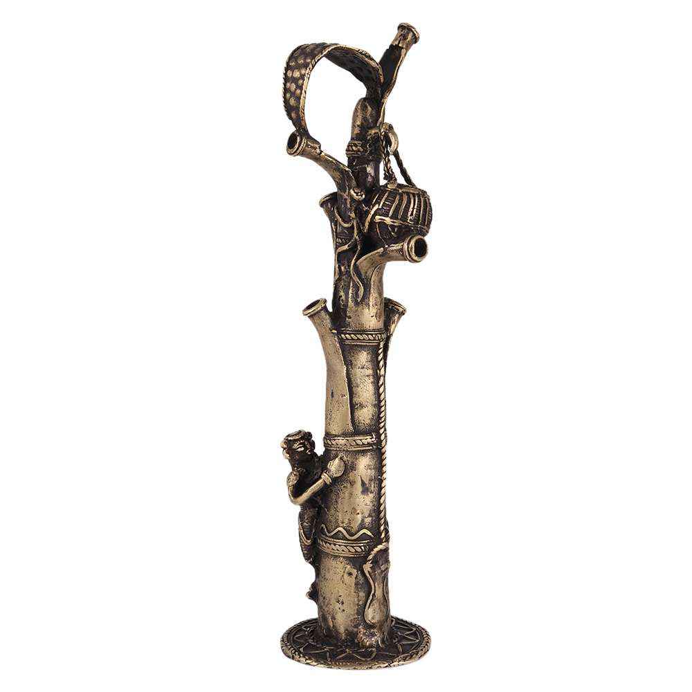 Brass Dhokra Incense Burner Of Tribal Man Holding Tree