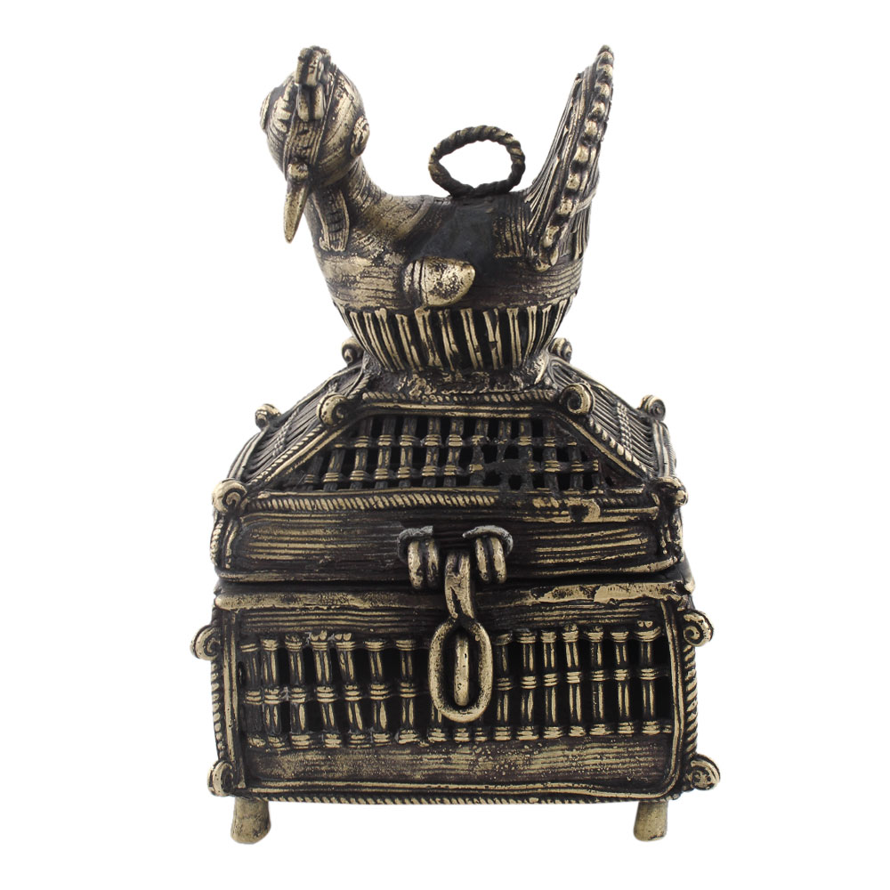• Brass Dhokra Jewelry Trinket Box Duck Statue
