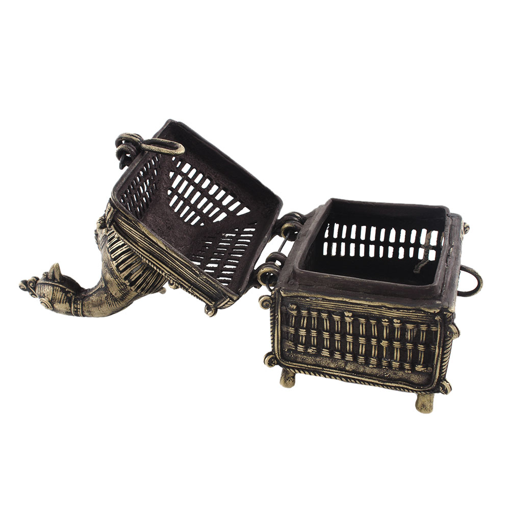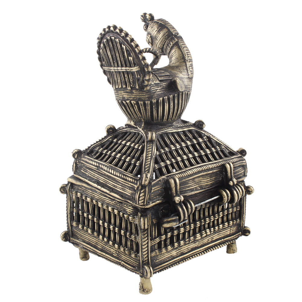 The dhokra art jewellery box is composed of brass and is handcrafted in India by expert artisans. This jewellery dhokra art is exquisitely crafted for storage, gifting, and decoration. It includes lovely engravings that make it more appealing, as well as a lock system that ensures safety.