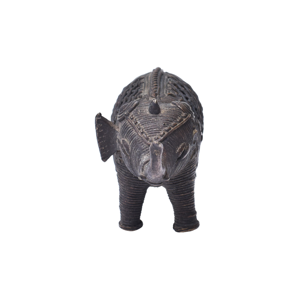• Brass Dhokra Style Elephant Statue With Trunk Up