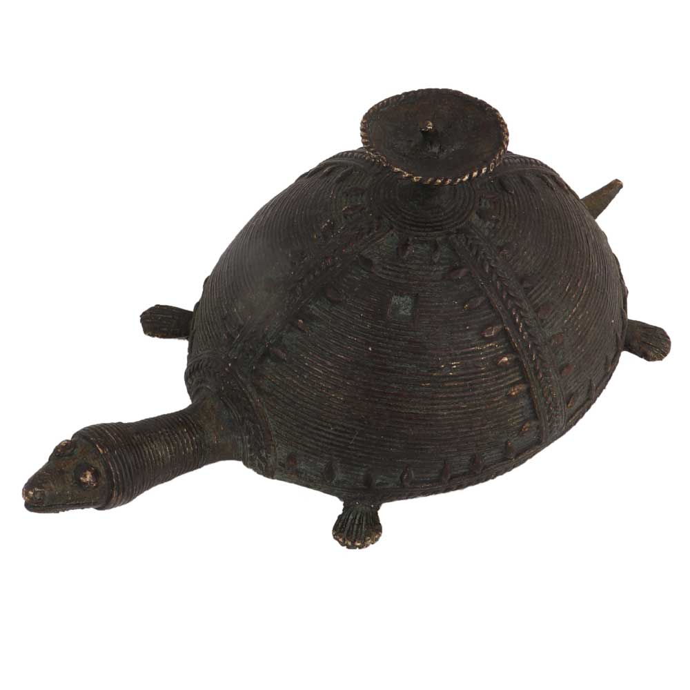 Whether it is lightning candles for birthday part or anniversary party or just to lighten up the atmosphere in the room this brass dhokra Turtle candle stand makes the most unique of all collectables you can probably own.