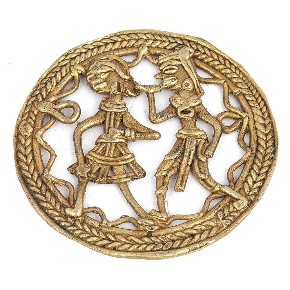 • Brass Dhokra Wall Art Dancing Art With Lattice Ornamentation