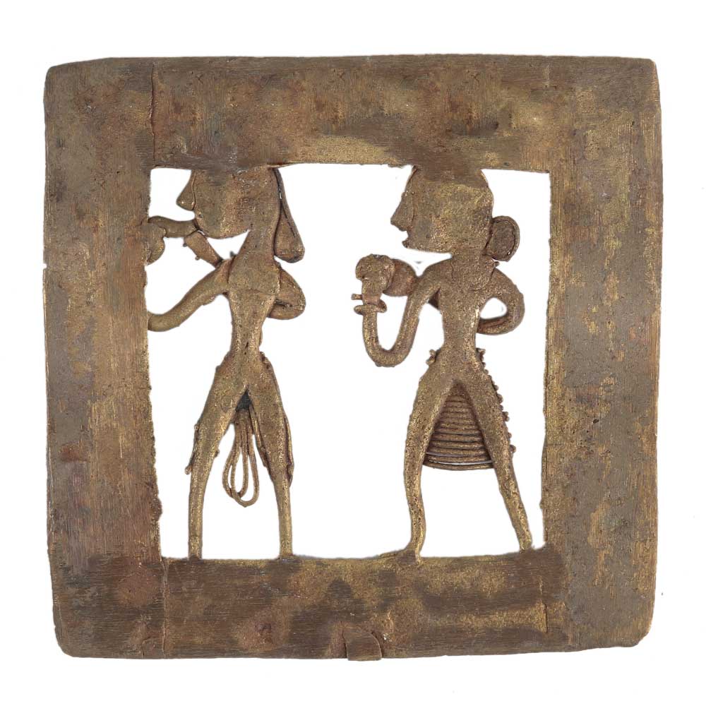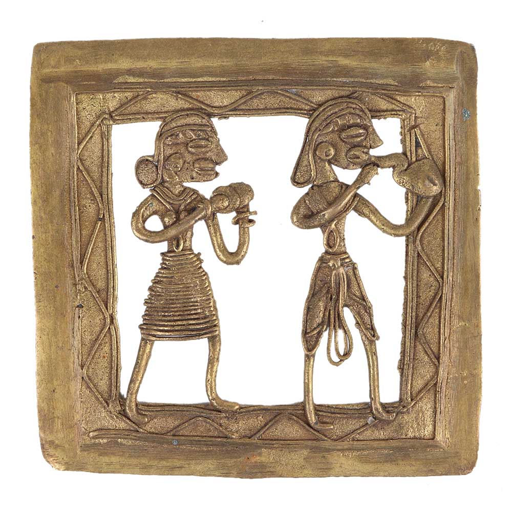 Brass Dhokra Wall Hanging of a musician couple where both are playing a musical instrument . The day to day activities of the tribal tribal are depicted inn these wall hangings. Used for home decoration, office and hotel decoration, Gift it to your near and dear ones.