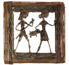 Brass Dhokra Wall Art Tribal Fisherman With Wife
