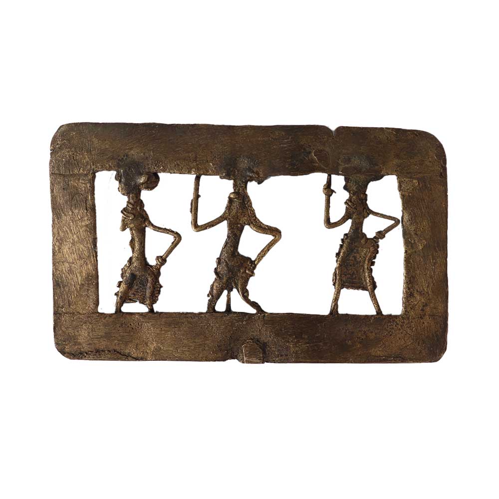 Metal Dhokra Art wall decor is a unique item for gift-giving and home-decorating applications. Dhokra Art is used for gift-giving as well as home and office decoration. This rectangular bass frame depicts tribal people's daily lives. with brass figurines of a man and woman. Use it for gifting or home and office decoration.