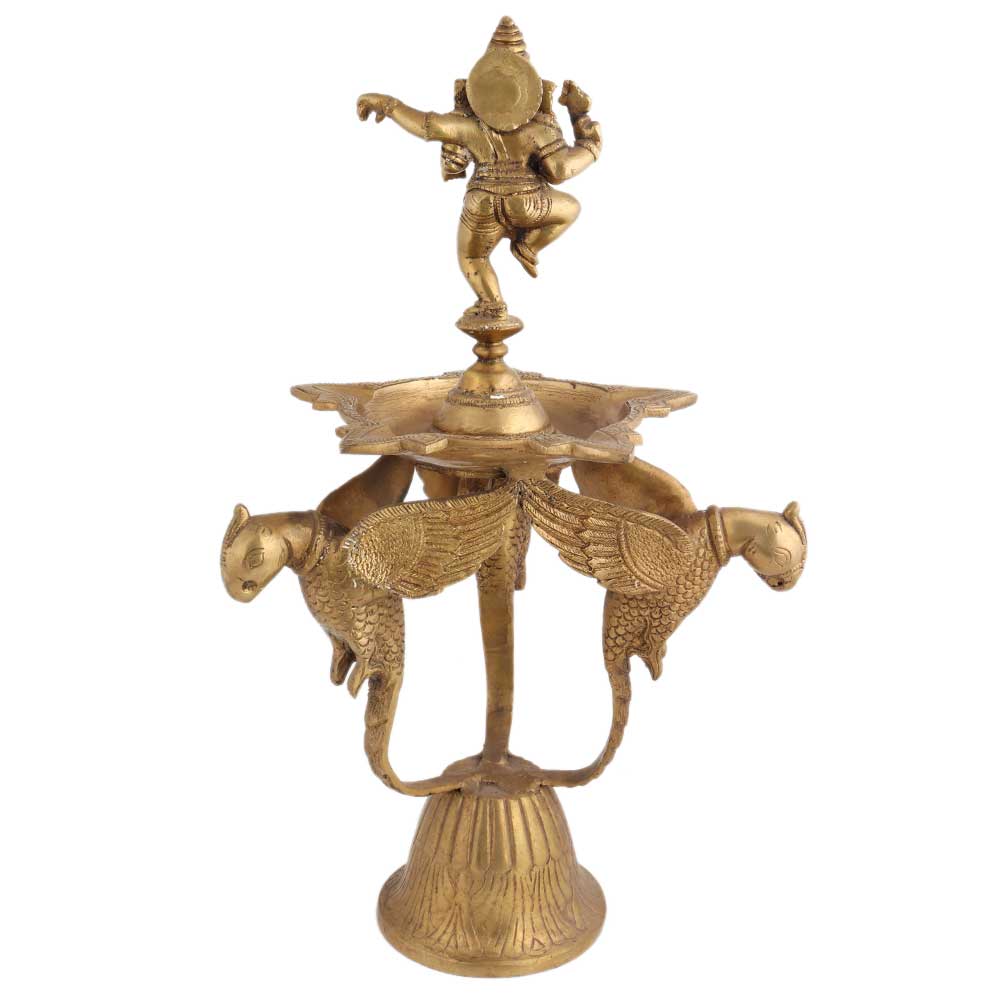 Brass Diya Dancing Ganesha On Three Peacock Stand adds an element of heritage to your home and an example of exquisite craftsmanship of indian tradition. Diwali decoration, wedding decoration, stage decoration, gift for your loved ones.