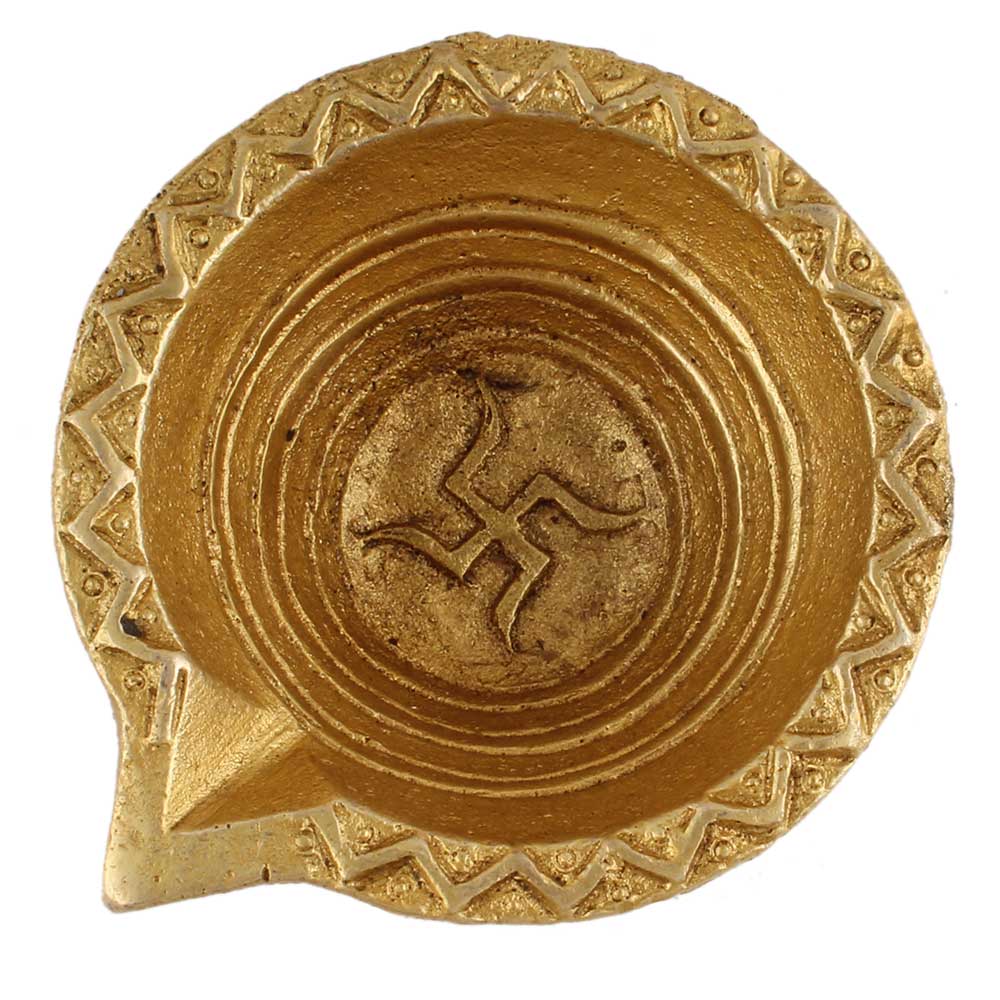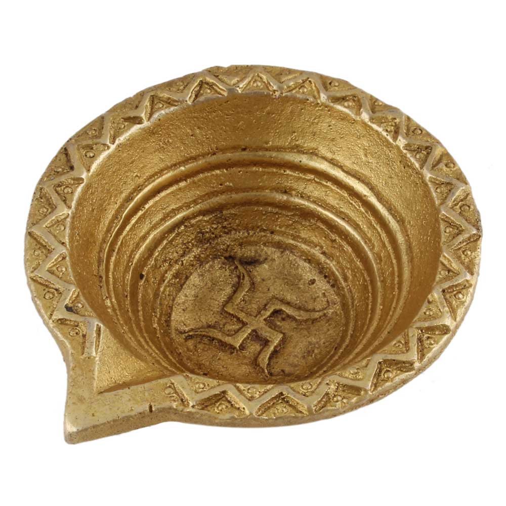 Bring light, blessings, and prosperity into your home with this Brass Swastika Diya Oil Lamp. Carved from pure brass and polished in radiant gold, this diya features the sacred Swastika symbol – a timeless emblem of protection, harmony, and good fortune. Compact yet meaningful, it is a perfect addition to mandirs, prayer thalis, and festive decorations.