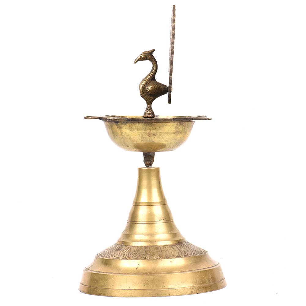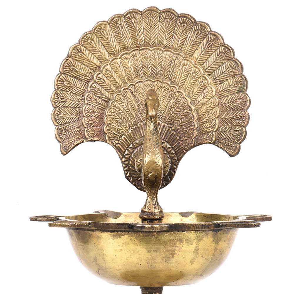 Brass Diya Wick Light Candle Lamp Peacock Design