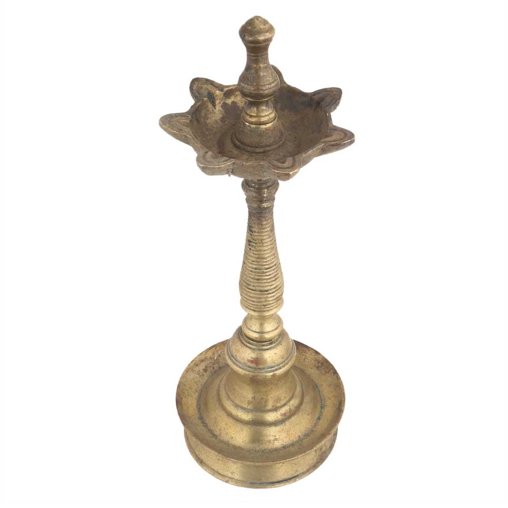 The simple-looking brass oil diya is going to stand proud and tall for a long time to come. The elegant classiness of the diya has been aptly illustrated by the artist. The brass stand below provides a solid base for the oil diya to stand steady and burn incessantly with no risk of tripping or falling.