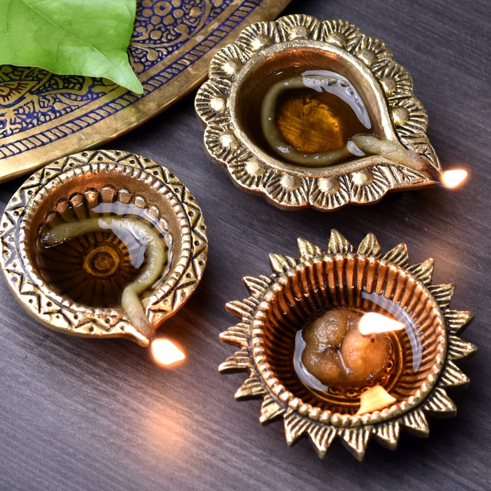 Clean with a dry cloth after use; polish occasionally to maintain the diya’s golden glow.