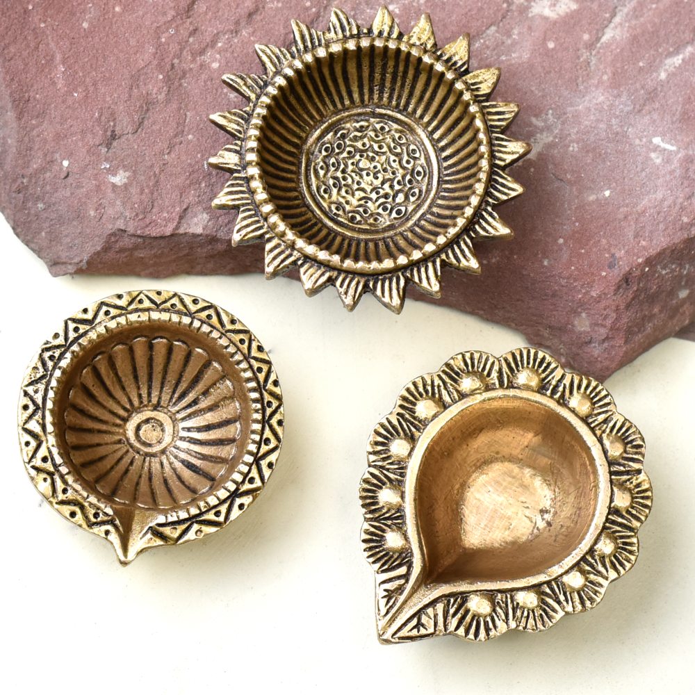 Light up your sacred spaces with these Brass Diyas for Diwali Decoration, intricately designed to combine devotion with artistry. Made from solid brass and finished in a radiant golden polish, these designer oil lamps feature traditional floral-inspired detailing that reflects cultural richness and auspicious charm. Compact in size yet impactful in presence, they are perfect for Diwali décor, temple rituals, or as timeless festive gifts.