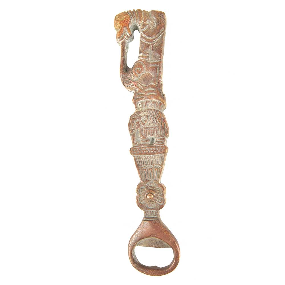 Brass Dog Head Elephant Bottle Opener with Patina