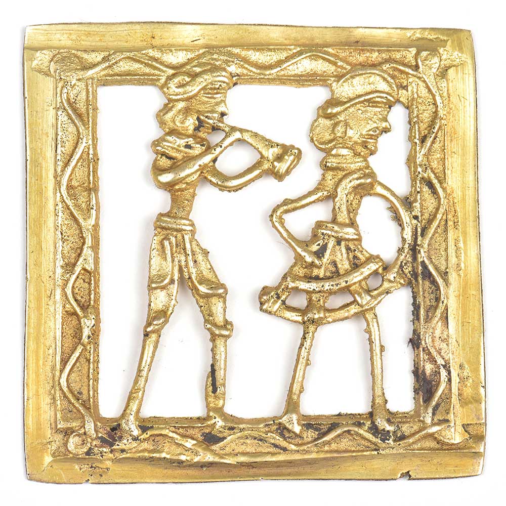 Brass Dokra Tribal Musician With Dancer Wall Art