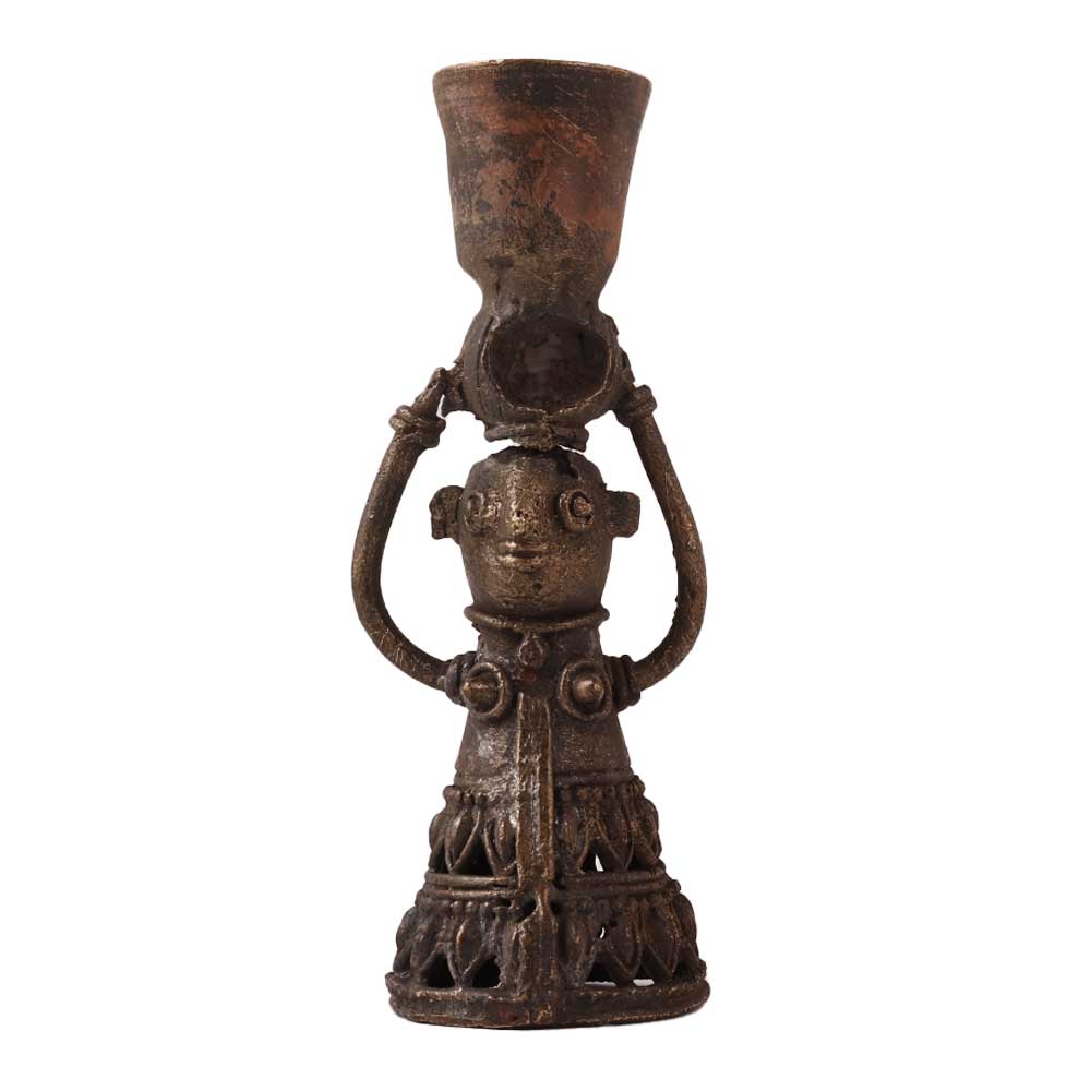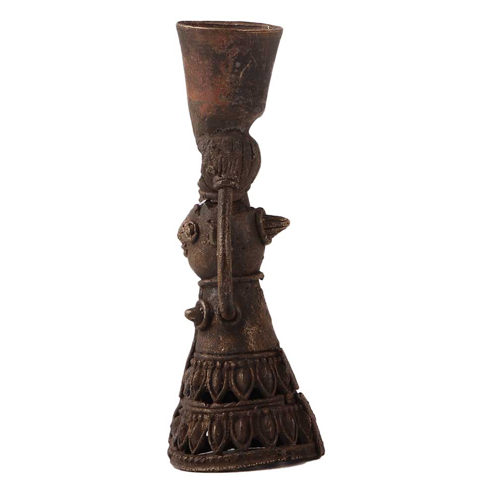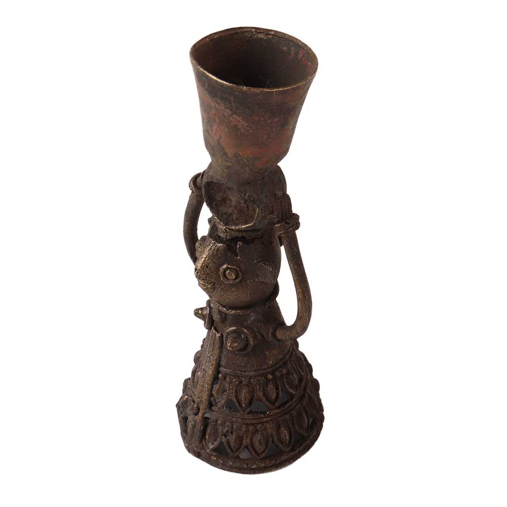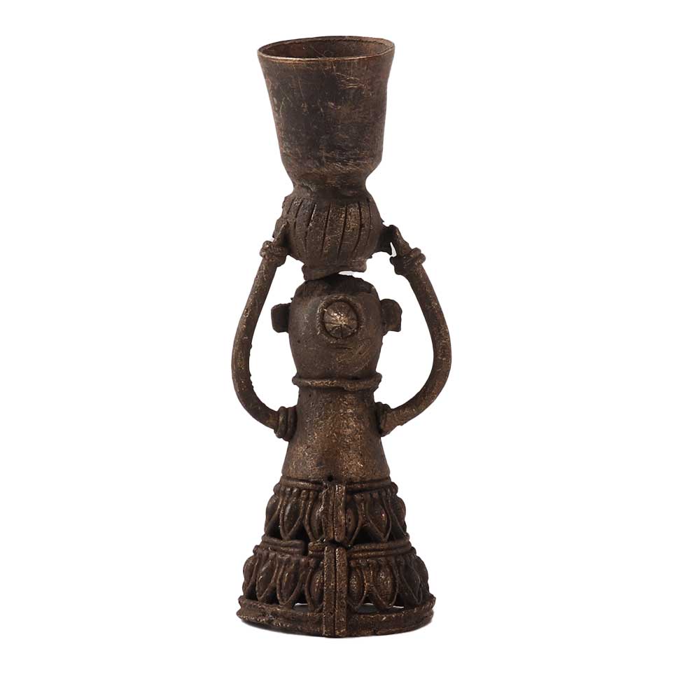 Exhibit a brass doll candle stand in your home or vintage collection. A garnished folk art candle stand that will match your decor and add an aesthetic touch. Use this candle holder during electricity shutdown by placing a candle in the stand and carry it easily. The jali work on the stand will give your home and office an alluring look. Its unique doll carrying the candle stand on head makes it an attractive candle holder for your vintage art collection and a perfect gift for special or festive occasions for your friends, cousins, family or colleagues.