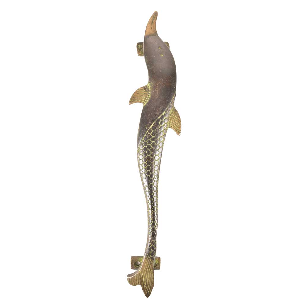 Brass Dolphin Figurine Door Handle With Patina