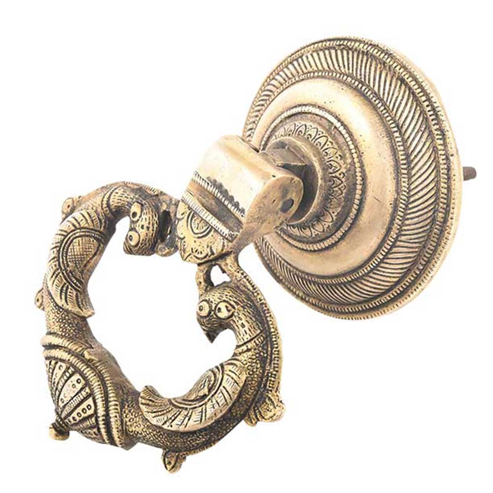 Indianshelf.com for bulk/wholesale orders.Indianshelf.us for personal purchases.Add a touch of elegance and symbolism to your door with the Brass Door Knocker or Pull featuring Twin Peacocks. This stunning piece combines the timeless beauty of brass with the intricate artistry of twin peacocks in full display. With their feathers fanned in all their splendor, these peacocks are a symbol of beauty, grace, and protection. This dual-function door knocker and pull offers both practicality and a refined aesthetic that will make your entryway unforgettable.