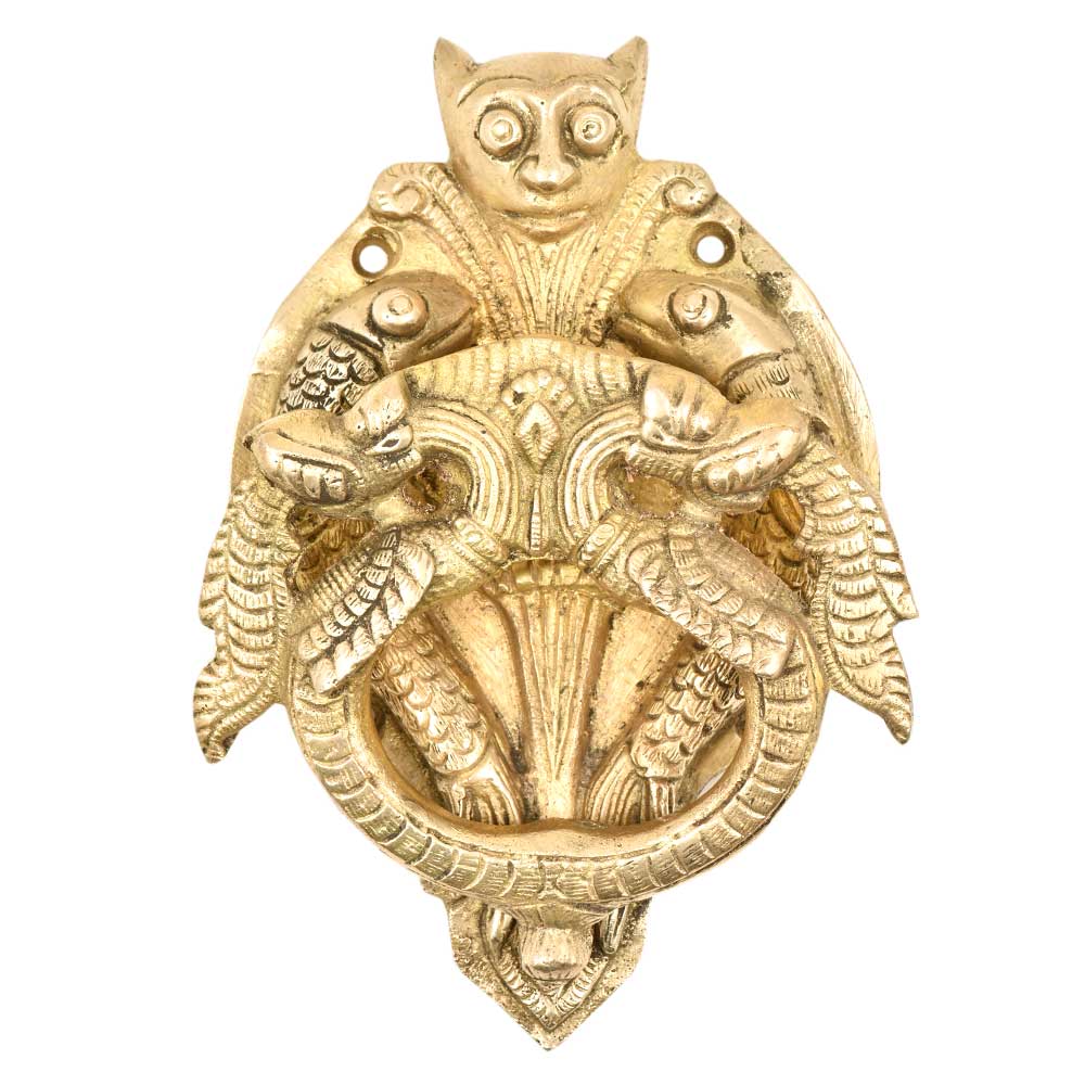 A very Solid Brass Door Knocker with two thunder dragon two fishes on thick oval plate with an intricately carved door knocker ring A truly perfect option for anyone, who needs their door hardware to both look good and work without any hassle. This piece sports a solid and sturdy structure and ensures years of flawless operation, while still being pleasing to look at.