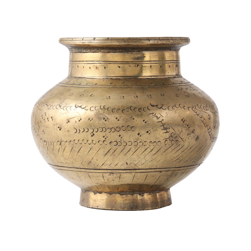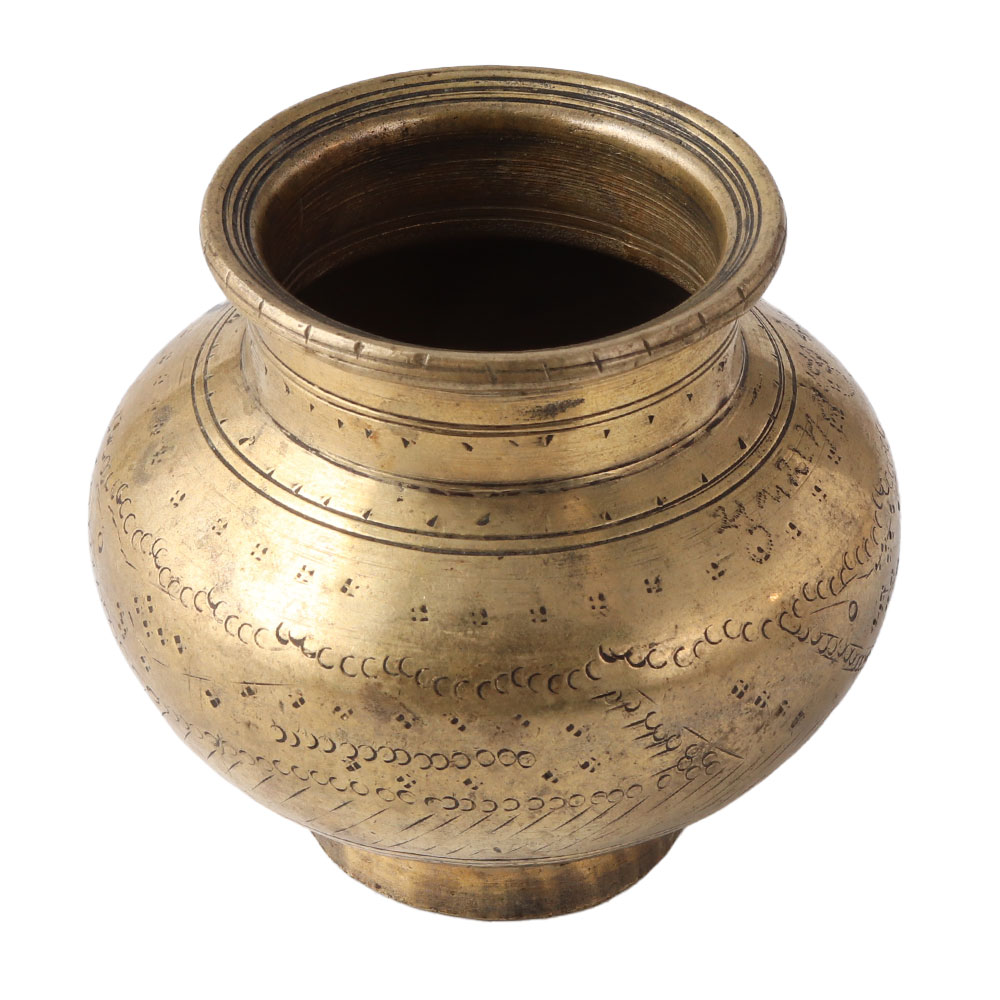 Brass planter pot made by hand for interior decoration. It can be used as a stage ornament, wedding gift, Deepavali gift, housewarming gift, showcase, flower pot, and planter pot, among other things.
