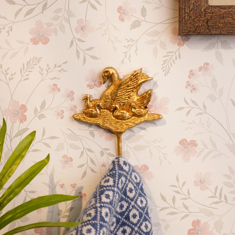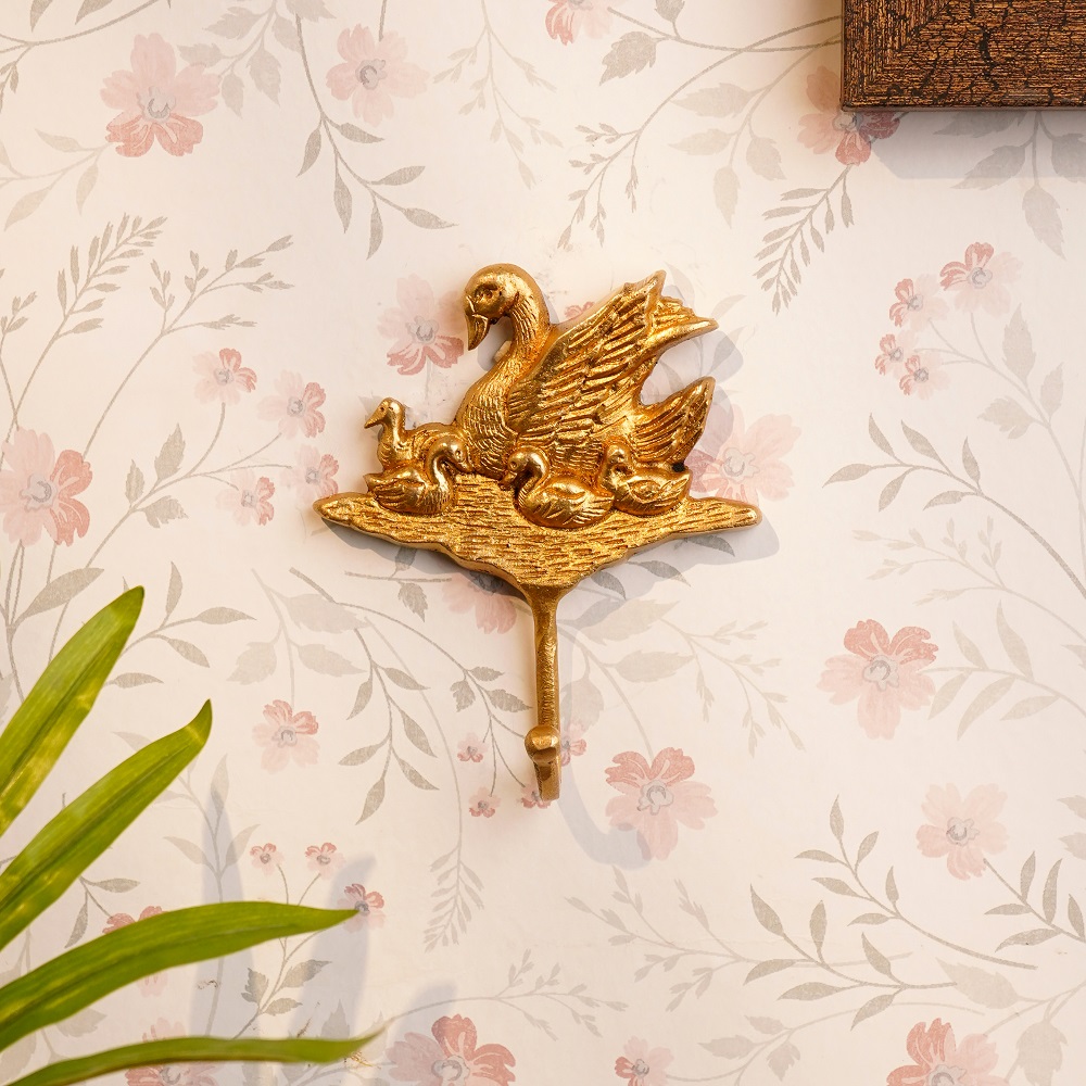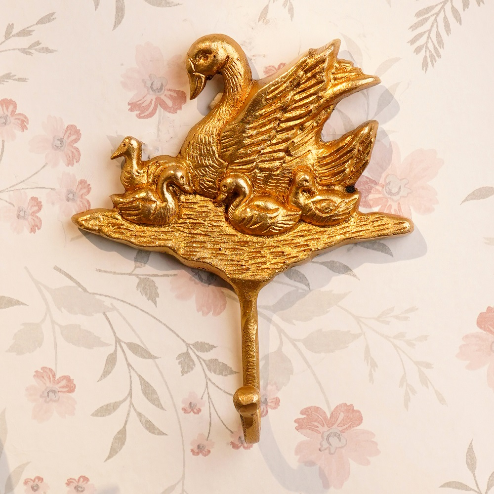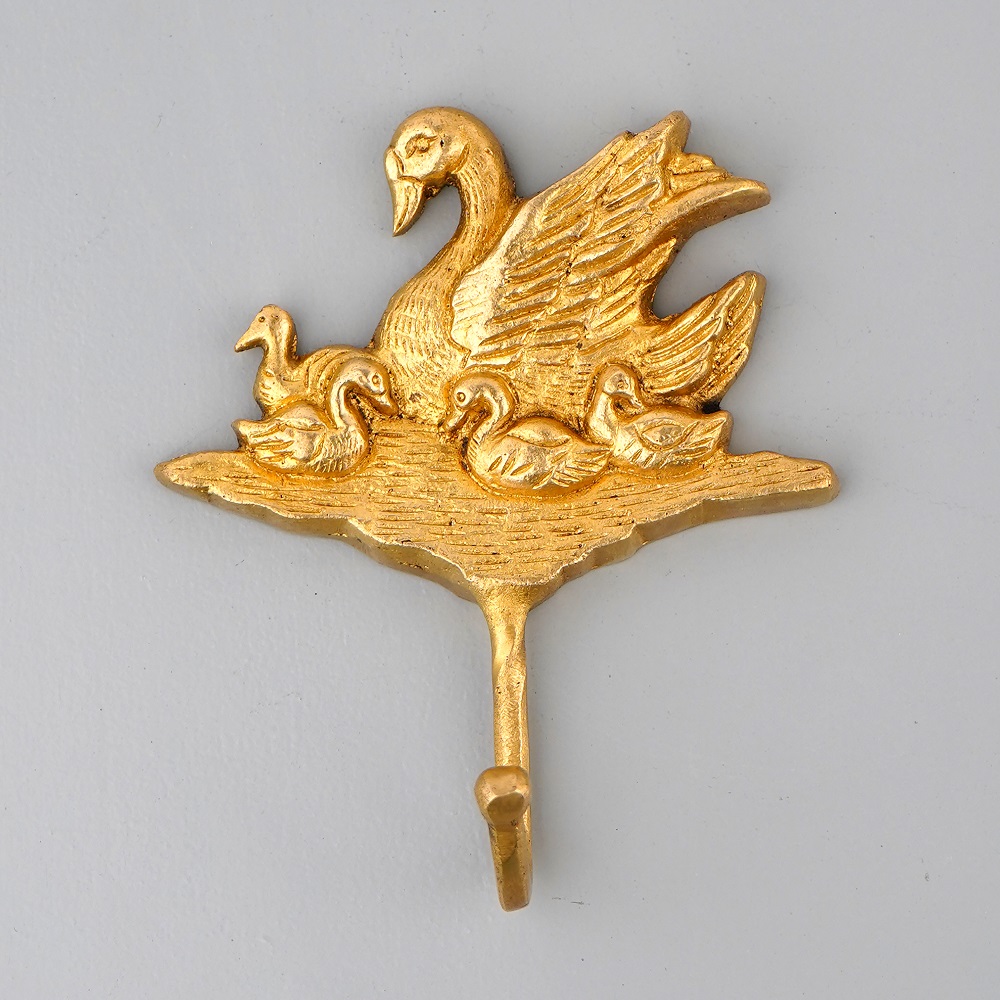 Indianshelf.com for bulk/wholesale orders.Indianshelf.us for personal purchases.Add a delightful touch of nature to your home with the Brass Duck Four Ducklings Wall Hooks. This charming wall hook set features a beautifully detailed mother duck accompanied by her four ducklings, crafted from high-quality brass. Perfect for organizing your space, these hooks serve as both a functional tool and a whimsical decoration, bringing character and warmth to your walls.