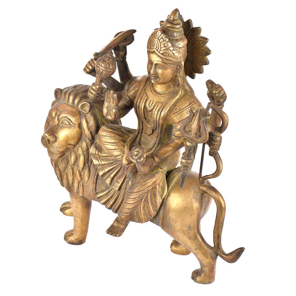 • Brass Durga Ma Statue Ambe Ma Shera Wali Idol