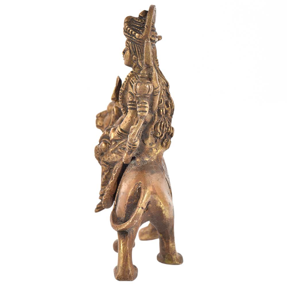 Brass Durga Statue Seated on Her Vehicle Lion Hindu Worship Statue