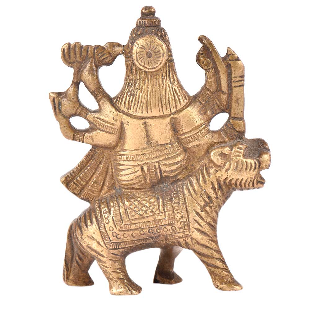 • Brass Durga  Statue Sherawali Mata For Puja Navratra Aarti
