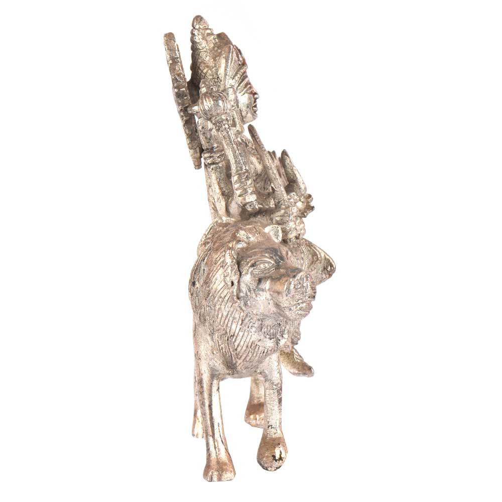 • Brass Durga Statue Sherawali Mata With Silver Polish