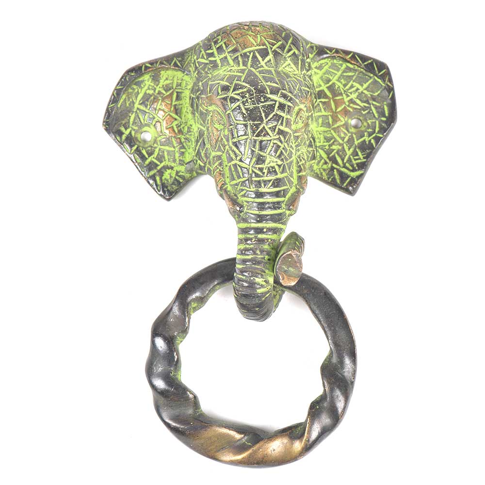 Brass elephant door knocker has patina which makes it more beautiful for your main gate. This door knocker has fine engravings and beautiful textures. It is handmade by the skilled craftsmen of India.
